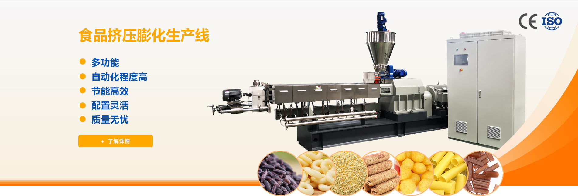 我司擠壓機和擠壓膨化機廣泛應用于食品,飼料,化學原料,等研發和生產領域。我司食品生產設備主要涵蓋膨化食品生產線,油炸食品生產線,通心面生產線,早餐谷物生產線,玉米片生產線,寵物食品生產線,中大型膨化水產飼料生產線,小型飼料膨化機制粒機,組織蛋白生產線,奇多零食生產線,變性預糊化淀粉生產線,面包糠生產線,膨化谷物營養粉生產線,寵物咬膠生產線等領域。